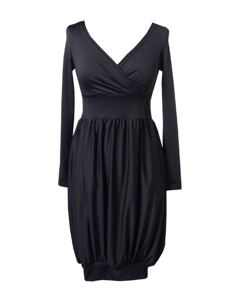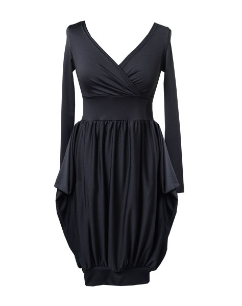 Jedną z moich ulubionych sukienek, jakie zaprojektowałam jest czarna bombka. Nie dość, że można odmieniać ją za pomocą trików stylizacyjnych, to dodatkowo sama w sobie ma kilka wariantów. Pierwszy – z futurystycznym, nowoczesnym dołem, drugi (jeśli boki ułożymy do środka) – bardziej klasyczny, trzeci ( z podwiniętym, dolnym ściągaczem) – oryginalna tunika. Sama jestem właścicielką kilku egzemplarzy tegoż modelu, w wielu kolorach. Czarnych mam aż trzy (nie pytajcie dlaczego 😉 ). Nie raz uratowała mi życie, kiedy szybko musiałam wyjść z pracy i biegiem udać się na ważne spotkanie, a później na spontaniczną imprezę 🙂