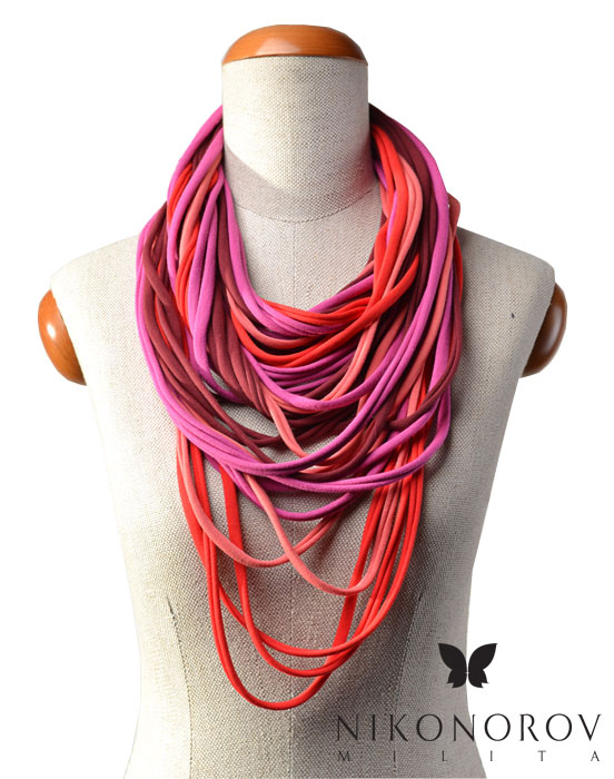 Domyślam się, że nie tylko ja będę za tym wszystkim tęsknić. Dla siebie i dla WAS stworzyłam nową linię naszyjników dzianinowych „BON APPETIT!”. Ich kolorystyka została zaczerpnięta z moich wakacyjnych podróży i niosą na myśl skojarzenia z przepysznymi deserami. Lody o smaku waniliowym, truskawkowym, kawowym komponują się z owocowymi sorbetami, dopełniają aromatyczną caffe latte i kuszą czekoladą z nadzieniem pomarańczowym….. Pycha!