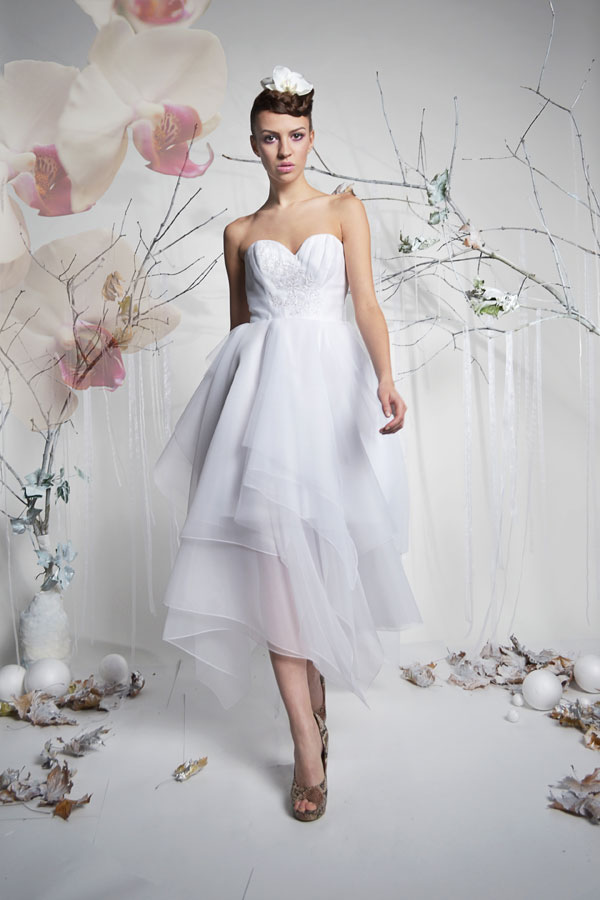 4. Krótka suknia ślubna – hit tego sezonu! A razem z nią suknia z krótkim przodem i długim trenem.