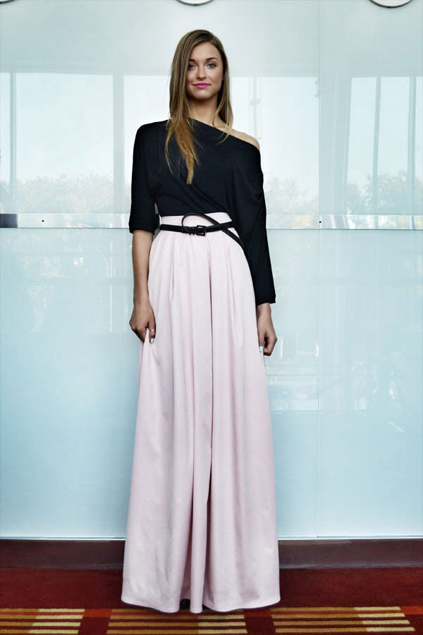 Podczas pracy nad kolekcją, przyszedł do mnie Dominik i spytał, czy nie chciałabym przywrócić jakiejś historycznej części garderoby. Takiej, o której zapomniano. Chciałam, ale nie wiedziałam co to mogłoby być, bo kolekcja była niemal ukończona i nic już nie wpisywało się w to, co zrobiłam. Tak mi się wydawało! Mierząc spódnice, odkryłam, że znacznie okazalej prezentują się z „czymś” pod spodem. KRYNOLINA! „Tak, zrobię halkę nią inspirowaną!”. I jest! Przywracam historyczną krynolinę, ale w wersji mini. Fiszbinowe obręcze podtrzymują konstrukcję a tiul dodatkowo wypełnia spódnicę. Jest tak przemyślana, aby można było w niej siadać i czuć się komfortowo. Przetestowałam! Wersja z krynoliną zrobi wrażenie podczas wieczornych imprez, na codzień spódnica bez dodatkowej halki jest idealna nawet do pracy.