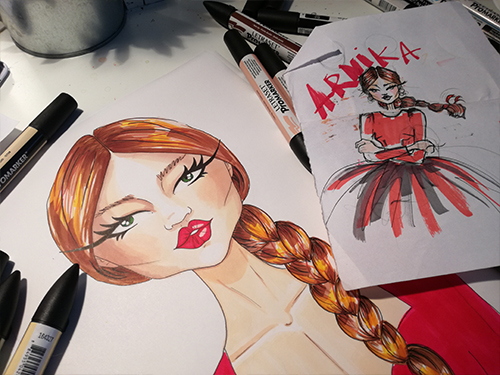 Ach! Zapomniałabym o bardzo ważnej osobie! Dostrzegłam ją na zdjęciu powyżej i gdyby nie to, całkowicie bym o niej zapomniała. A ona by mi tego nie wybaczyła! Mowa o naszej wspaniałej ambasadorce kolekcji! Jest nią Arnika Botanika. Nie wiem, czy powinnam mówić Wam TAKIE rzeczy, ale wymyśliłam ją u moich rodziców, jak byłam na Świętach i piłam wino. Zanim zaczęłam śpiewać, narysowałam JĄ. Już od kilku sezonów zbierałam się, aby wymyślić postać fikcyjną o ciekawej historii, ale to wino mojego taty, którego nie można ruszać bo jest zakazane 😉 okazało się pomocne i pewnie będę teraz musiała płacić tacie zaiksy 😉