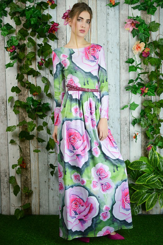 Później zaczęły się schody.. to co sobie wyobraziłam niekoniecznie chciało powstać. Chodzi tu o techniczne sprawy o których klienci często nie mają pojęcie. Ile prób druków trzeba wykonać, aby wyszły tak jak chcesz, ile materiałów przetestować, aby znaleźć ten idealny? Na szczęście się udało, więc mogłam zająć się fasonami i konstrukcją. Tu też sprawa nie jest oczywista. O ile kilka sprawdzonych modeli zostało „przemyconych” w nowej odsłonie, o tyle nowe modele zawsze testuję na sobie. Nie muszę zaznaczać, że nie robię tego w jeden dzień. Sprawdzam nie tylko to jak sukienki czy suknie się układają gdy stoję przed lustrem ale również gdy się poruszam, pracuję, idę na zakupy czy z psem na spacer. Przymierzam kreacje na różnych typach sylwetek abym później, pisząc opis mogła z czystym sumieniem polecić go dla danej figury. Kiedy już wszystko się zgadza przechodzę do stopniowania i wyboru skali rozmiarów dla poszczególnych fasonów. To też jest kwestia prób. Nie każda sukienka wygląda dobrze w większych rozmiarach i dlatego niektóre z nich są w butiku np. tylko do 38 rozmiaru. Oczywiście znaczną większość staram się projektować tak, aby osoba w rozmiarze 44 też wyglądał dobrze.