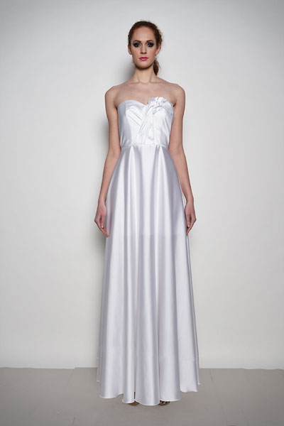 Choć od jej debiutu minęło już trochę czasu, cieszy się niesłabnącym powodzeniem. O czym mowa? O jedwabnej, wieczorowej sukni, ręcznie drapowanej i zdobionej gipiurą. Powstała już w wielu kolorach i wariantach, wyszywałam ją różnymi koronkami – za każdym razem tak, aby była jak najbardziej spersonalizowana.
